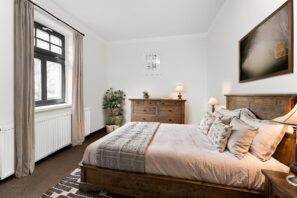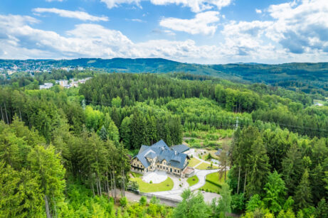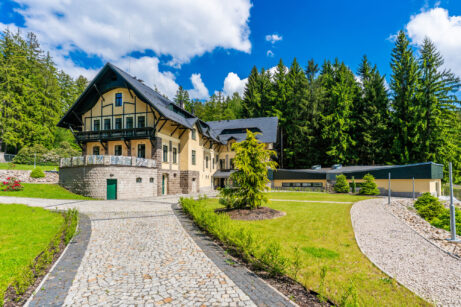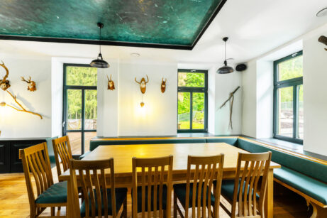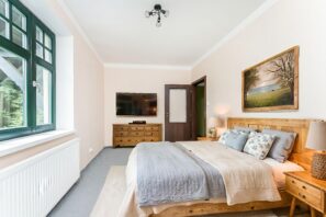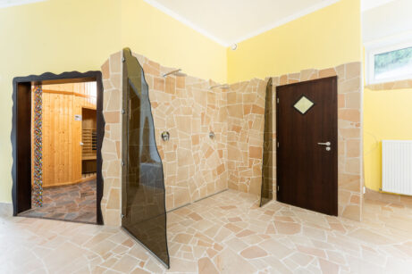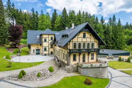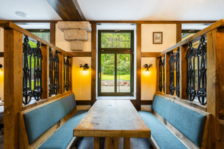 Hotelová část se nachází v prvním patře a podkroví a obsahuje 21 jednotek ( 4 apartmány, 16 pokojů a jeden služební byt 2+kk)