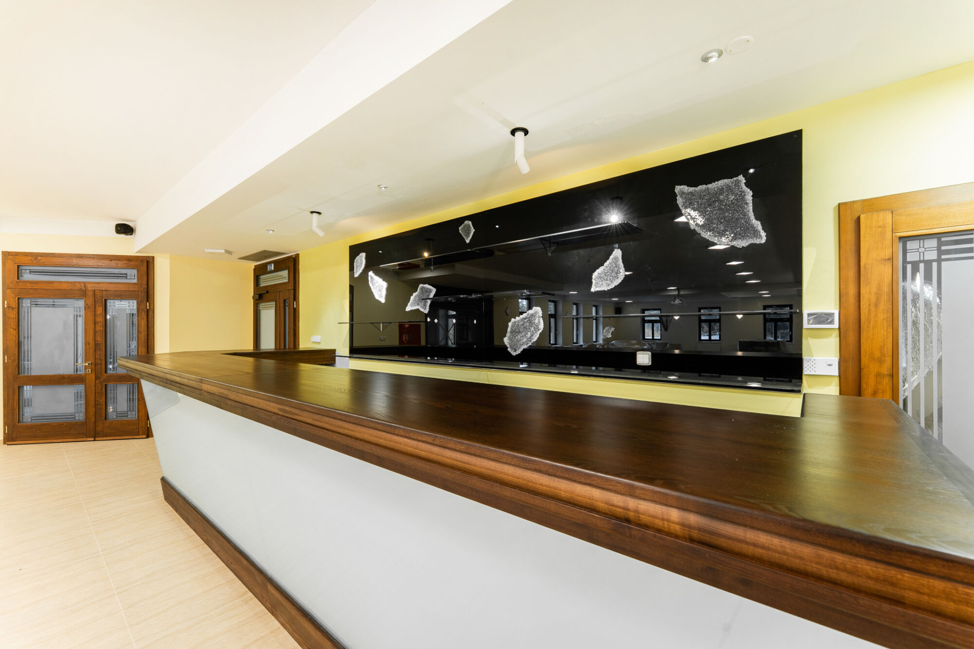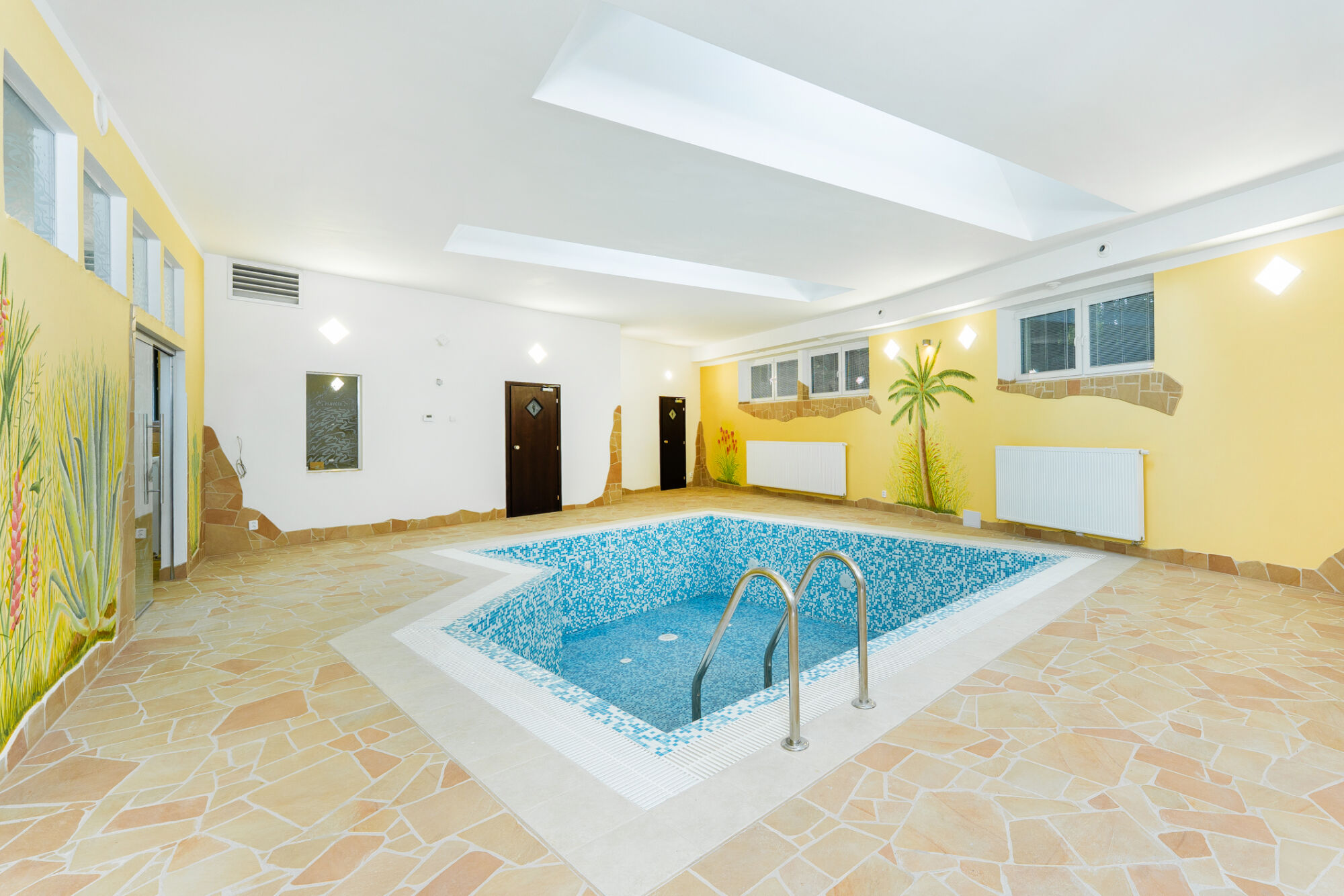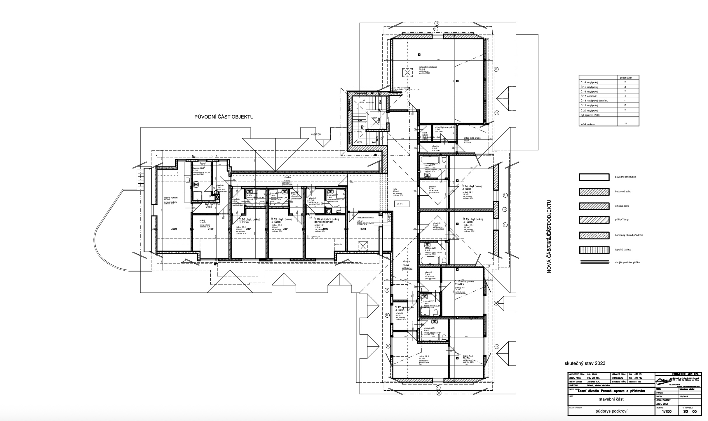 Hotelová část se nachází v prvním patře a podkroví a obsahuje 21 jednotek ( 4 apartmány, 16 pokojů a jeden služební byt 2+kk)
