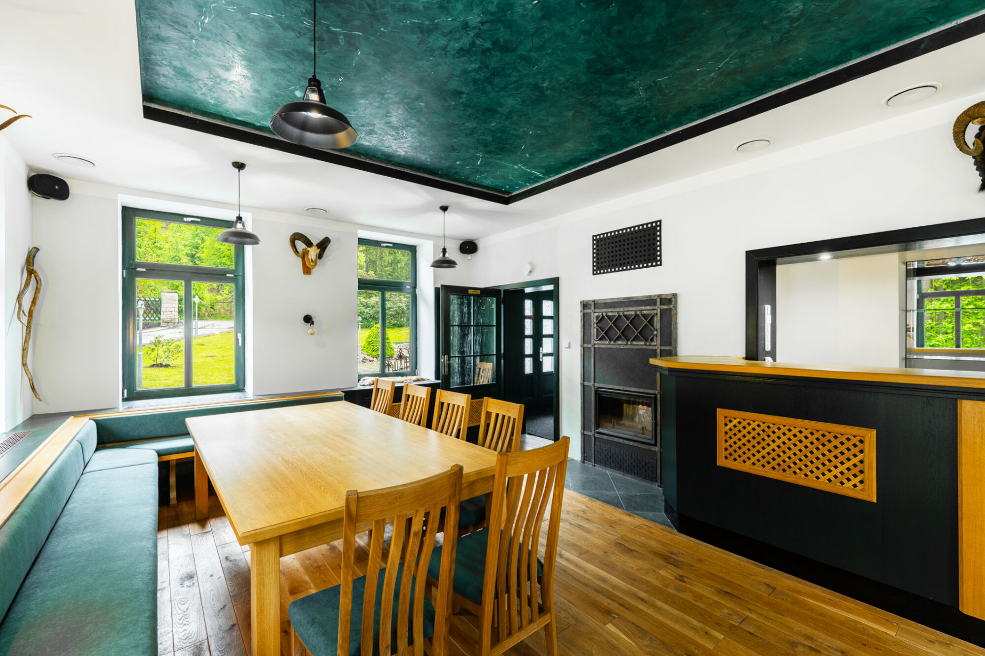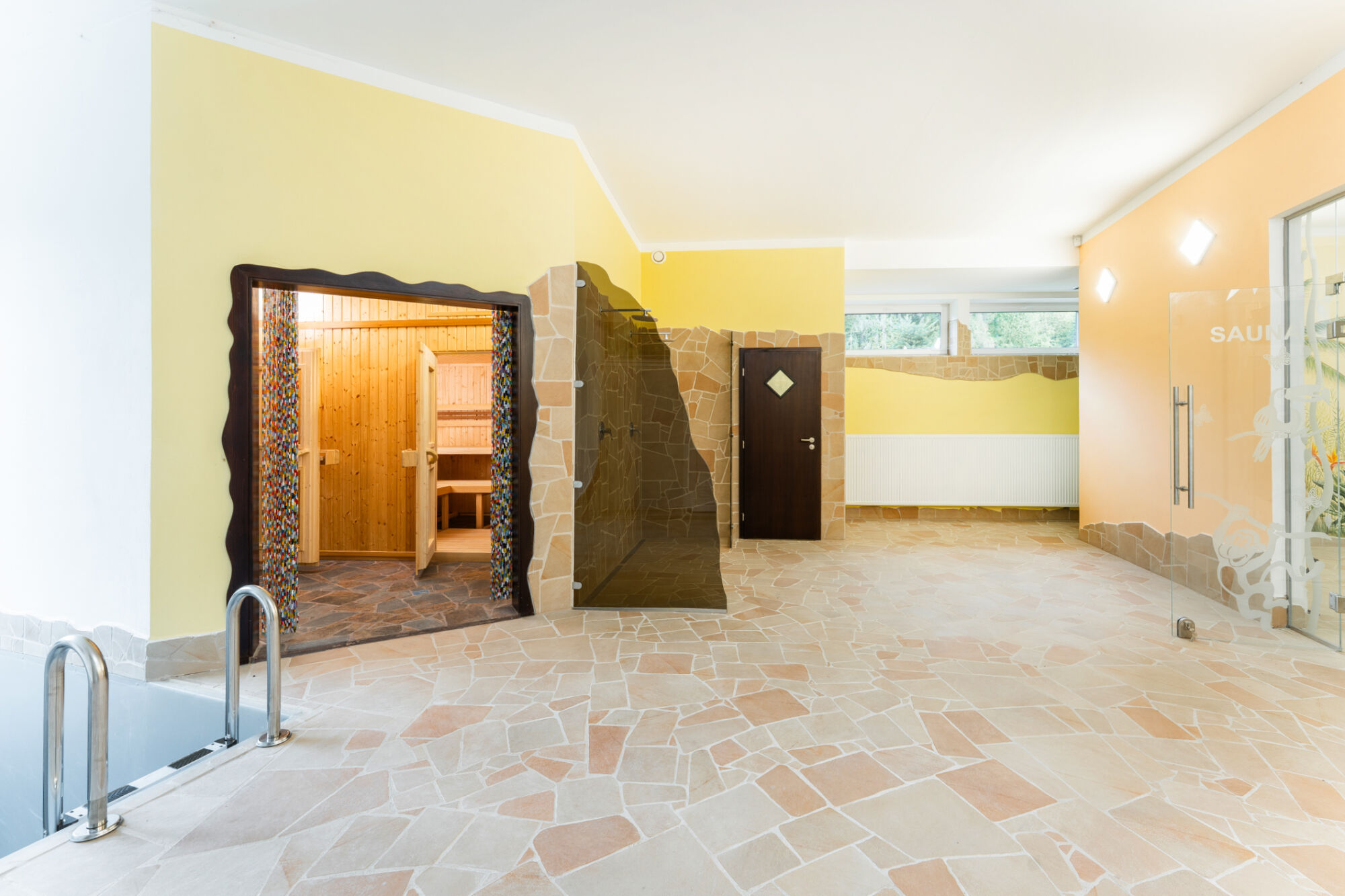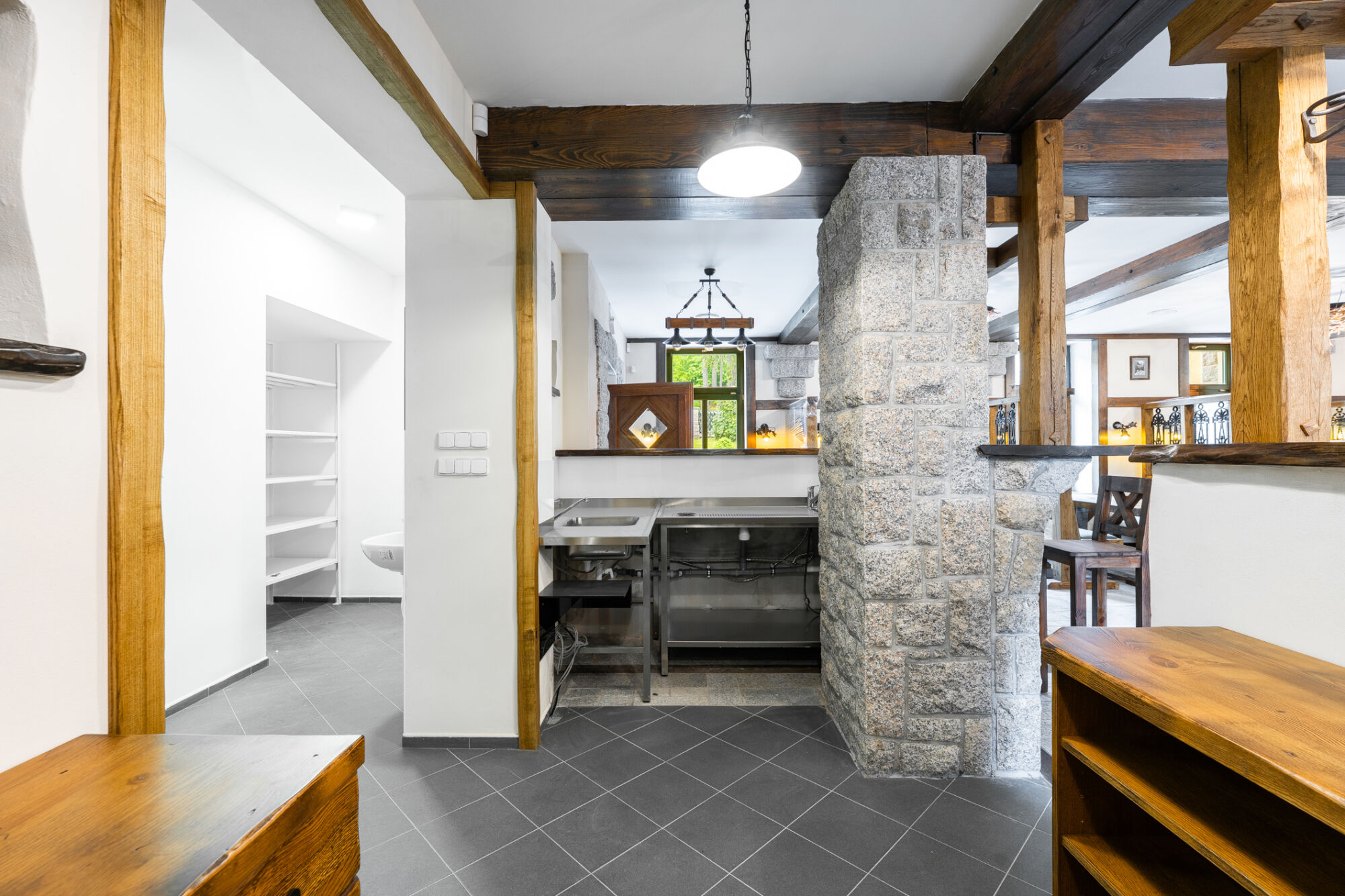 Hotelová část se nachází v prvním patře a podkroví a obsahuje 21 jednotek ( 4 apartmány, 16 pokojů a jeden služební byt 2+kk)